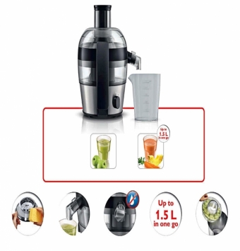 شما می توانید در هر بار استفاده تا ۱٫۵ لیتر آبمیوه بگیرید بدون این که نیاز باشد مخزن تفاله را خالی کنید.