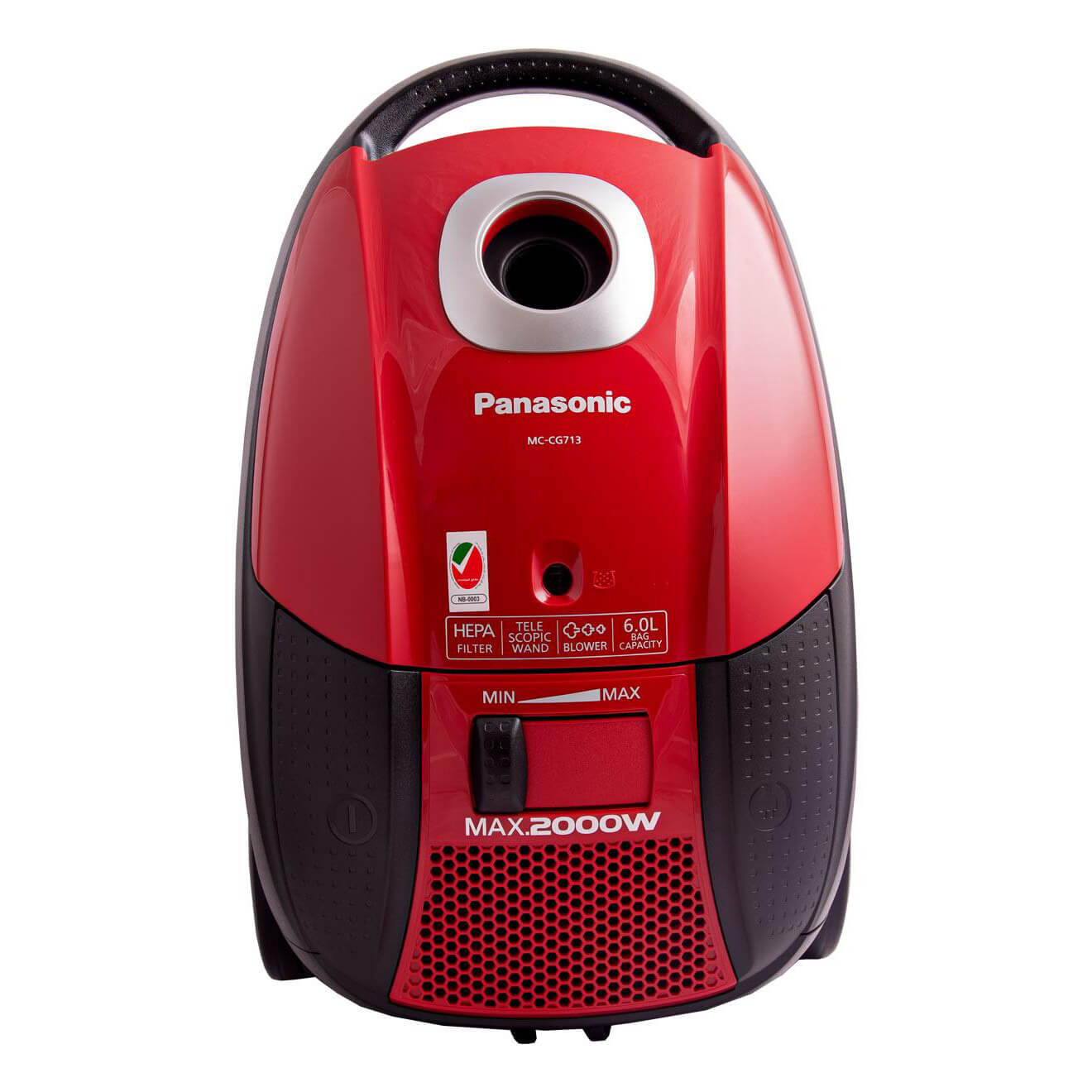 جاروبرقی مدل «MC-CG713» از جاروبرقیهای کیسهای شرکت «پاناسونیک» (Panasonic) بوده که در رنگهای سفید، آبی و قرمز تولید و عرضه شده است. این دستگاه علاوهبر بهرهمندی از قدرت و کیفیت بالا از امکانات متعددی نیز برخوردار است که از مهمترین آنها میتوان به قابلیت دمنده اشاره کرد. گاهی با سریهای مختلف جارو و تغییر قدرت مکش همچنان نمیتوان برخی نقاط دسترسناپذیر بهویژه زیر کابینتها یا مبلمان را بهخوبی جارو کرد؛ اما با قابلیت دمنده در جاروبرقی پاناسونیک مدل MC-CG713 کافی است لولهی خرطومی را به بخش دمنده متصل کرده و دستگاه را با قدرت موردنظر روشن کنید تا گردوخاک یا زبالهها از آن نقطه دور و بعداً جارو شوند. گنجایش بالای مخزن دستگاه از دیگر امکانات آن است و کیسه یا پاکت جارو دیرتر پر میشود؛ علاوهبراین نشانگر میزان پرشدن مخزن نیز روی دستگاه تعبیه شده است که به کمک آن پی میبرید که چه زمان به تعویض پاکت یا تخلیهی کیسهی دائمی نیاز دارید. لولهی این جاروبرقی نیز تلسکوپی بوده و از کلید تنظیم مکش هم برخوردار است. روی سری پارویی یا نازل هم کلید پایی تنظیم حالت پارویی قرار گرفته که برای جاروکشی سطح فرش و سرامیک قابلتغییر است. از دیگر قابلیتهای قابلتوجه این مدل میتوان به فیلتر خروجی قدرتمند آن اشاره کرد. جاروبرقی MC-CG713 با برخورداری از فیلتر HEPA، هوای خروجی را تا بیشترین حد تصفیه میکند. دستهی این مدل هم با طراحی منحصربهفرد و جدیدی تولید شده است که به جذابیت و زیبایی این محصول میافزاید. متعلقات یا سریها هم زیر این دسته قرار گرفتهاند تا بهراحتی در صورت نیاز در دسترس باشند و تعویض شوند. گفتنی است شرکت پاناسونیک، تولیدکنندهی این دستگاه، سالها در تولید و عرضهی انواع لوازم برقی ازجمله لوازم برقی خانگی و صوتیتصویری فعالیت داشته و ضمن ارائهی محصولاتی که همواره نوآوری و کیفیت را با هم داشتهاند، رضایت مصرفکنندگان این حوزه را جلب کرده است.