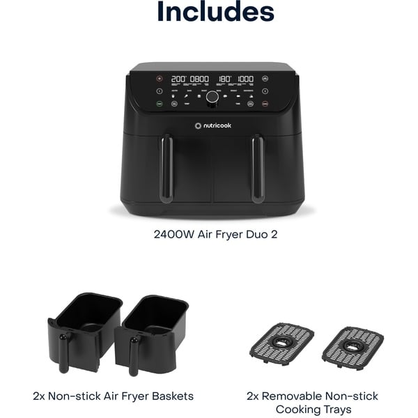 آیا از گذراندن ساعت ها در آشپزخانه و تهیع غذاهای سرخ کردنی خسته شده اید؟ سرخ کن دوقلو نوتریکوک مدل NC-AFD185، یک دستگاه آشپزخانه همه کاره و کارآمد که عملکردهای سرخ کن و هواپز را در یک طراحی شیک ترکیب می کند. این سرخ کن دوقلو با ظرفیت 8.5 لیتر و یک کاسه نچسب و ضد خش، برای پختن غذاهای خوشمزه برای خانواده یا مهمانان شما عالی است. این سرخ کن نوآورانه با 12 برنامه پخت و پز، از جمله قابلیت سرخ کردن با یا بدون روغن، طیف وسیعی از گزینه های پخت و پز را برای پاسخگویی به ترجیحات خاص شما ارائه می دهد.