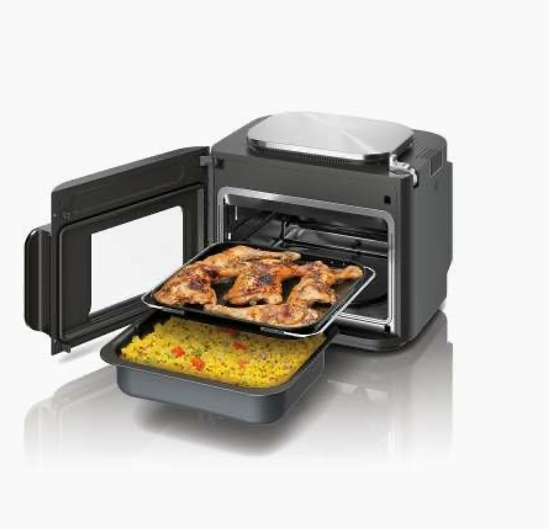 لوازم کاربردی همراه این دستگاه شامل یک ظرف بخصوص برای پخت ترکیبی با روکش سرامیک نچسب، یک سینی سرامیکی نچسب جهت هواپز و سرخ کردن و همچنین یک سینی پخت جهت آماده سازی مواردی همچون پیتزا و…به همراه این مجموعه میباشد.