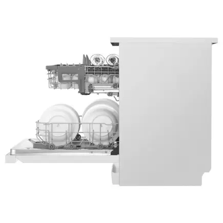 ماشین ظرف شویی ال جی 512 بسیار عالی می باشد و می تواند با کیفیت فوق العاده برای شما کار کند. این وسیله حداکثر پوشش را برای ظروف شما فراهم می کند بنابراین شما می توانید ظرف های خود را داخل ماشین ظرف شویی قرار دهید و بهترین استفاده را ببرید و همه ظرف های خود را تمیز و عالی از آن بیرون آورید. فناوری QuadWash™این امکان را برای شما فراهم می کند تا بهترین پوشش را آورد. بازو ها به صورت اسپری آب را می پاشند و با قدرت بالا این کار را انجام می دهند که بسیار عالی می باشد. بازوهای چرخان چند جهته جریان های آب را در زوایای مختلف پرتاب می کنند که به هر گوشه ماشین ظرفشویی می رسد، این وسیله از چهار بازوی استفاده می کند. QuadWash™ با چهار بازوی اسپری به جای دو بازو، عملکرد تمیز کنندگی قوی تری را برای تمیز کردن هر ظرف روی هر قفسه ارائه می دهد. شما می توانید تمام ظروف را به دلخواه خود داخل این ماشین ظرف شویی قرار دهید و می توانید گاهی ماهیتابه را داخل قفسه بالایی قرار دهید و گاهی ظروف دیگر را در داخل بچینید و از آن بهترین استفاده را ببرید. ارتفاع قفسه بالایی را در سه سطح مختلف تنظیم کنید تا وسایل بلندتر را بارگیری کنید. بنابراین به راحتی می توانید ارتفاع قفسه ها را تنظیم کنید و از آن استفاده کنید.