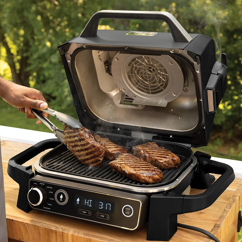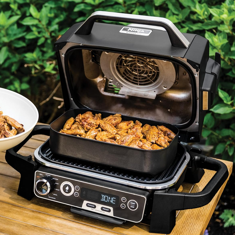 گریل باربیکیو برقی نینجا مدل OG701 با برق کار می کند و دارای 7 برنامه گریل کردن، دودی کردن، سرخ کردن، کباب کردن، پختن، گرم کردن و آبگیری است. این دستگاه 2400 واتی به امکانات پیشرفته ای از جمله تکنولوژی Woodfire مجهز شده و شما باید در مخزن مخصوص، تکه های چوب را به منظور ایجاد آتش و گریل کردن مواد غذایی قرار دهید. با این تکنولوژی جدید طعم دودی و کبابی خوشمزه ای ایجاد می شود که از خوردن آن لذت زیادی خواهید برد.