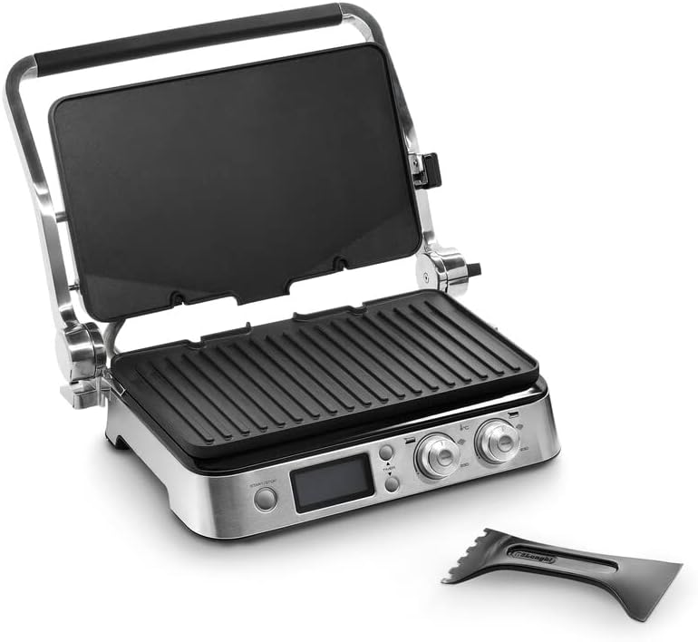وجود لولای متحرک یکی از خصوصیات مهم این گریل دلونگی است، که باعث می شود بتوانید حجیم ترین مواد غذایی را به صورت یکنواخت طبخ نمایید. نمایشگر LED شفاف و زیبا دارای کاربری بسیار آسان بوده و علاوه بر زیبایی بصری ایجاد شده می تواند مزیتی در کاربری نسبت به دیگر دستگاه های گریل باشد.