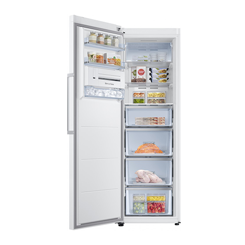 قسمت فریزر نیز دارای 4 کشو با حجم گسترده می باشد که جنس بدنه آن شفاف است و می توانید مواد غذایی منجمد خود را درون آن جای بدهید. جنس قفسه ها و کشو مقاومت زیادی در برابر یخ زدگی و دمای فریزر دارند. همچنین برای رعایت کردن بهداشت می توان مواد گوشتی را داخل کشوها قرار داد همچنین بر روی درب فریزر 2 طبقه برای نگهداری بطری ها وجود دارد.