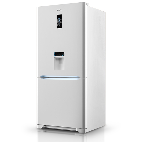 کابین یخچال در بالا و کابین فریزر در پائین محصول طراحی و در دسترس می باشد .